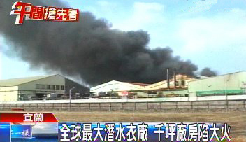全球最大潛水衣代工廠宜蘭廠區(qū)數(shù)千平米廠房突被大火吞噬(圖片來源;臺(tái)灣TVBS電視臺(tái))
