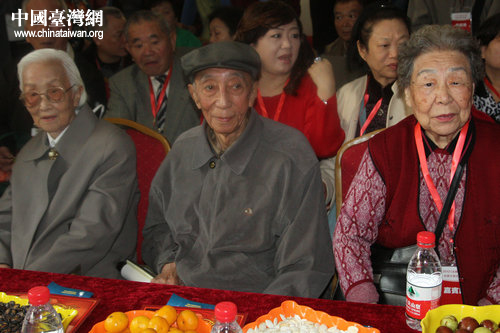 天津93歲老人任孝英(左)、92歲老人金錫佑(中)與來自臺灣90歲的王春英女士(右)是當天參加活動年齡最大的三位老人。(中國臺灣網 郭瑩瑩 攝)