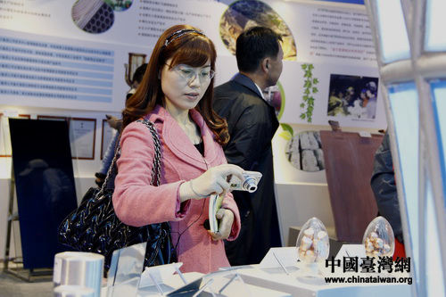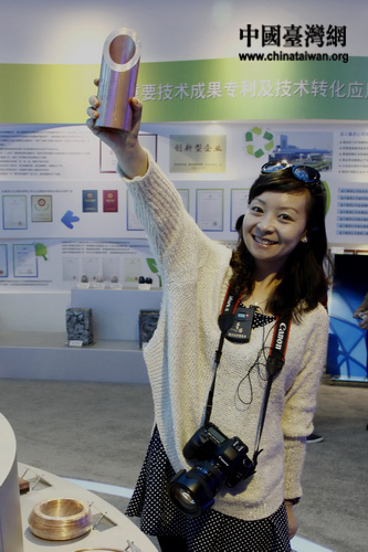 10月23日,“感知甘肅”第四屆網(wǎng)絡媒體采訪團參觀考察金昌市循環(huán)經(jīng)濟發(fā)展狀況。 圖為記者用相機記錄下循環(huán)經(jīng)濟成果展示臺的樣品。 (中國臺灣網(wǎng) 董憲超 攝)