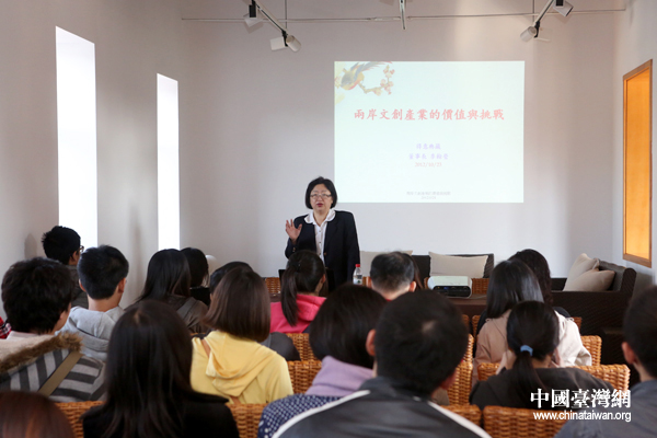 北京得意典藏公司董事長、臺商李瀚瑩女士為同學(xué)們舉行了題為《兩岸文創(chuàng)企業(yè)的價值與挑戰(zhàn)》的講座,以親身經(jīng)歷為同學(xué)們在大陸工作和創(chuàng)業(yè)提供了寶貴的經(jīng)驗。(中國臺灣網(wǎng) 普燕 攝)