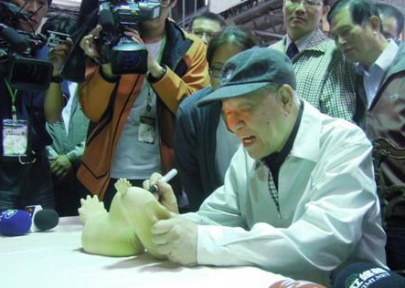 李登輝下鄉給木雕雞簽名 嚷:公的要老實(圖)