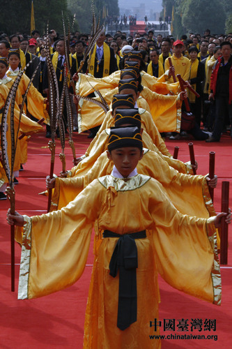 參加八佾舞的小朋友為大家展示八佾舞的風采。(中國臺灣網 陳睿 攝)
