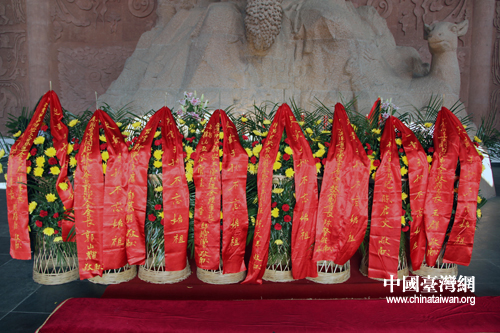 主祭嘉賓為炎帝神農氏進獻的花籃。(中國臺灣網 陳睿 攝)