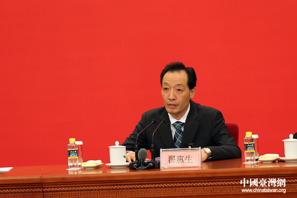 十八大新聞中心主任翟惠生主持新聞發布會。(中國臺灣網 王偉 攝)