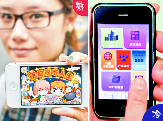 臺當局各主管部門App,人氣最旺的是臺當局觀光部門開發的“阮的夜市人生”(左圖);臺當局經濟主管部門的“營銷躍進MKT”(右圖)最冷門。圖片來源“臺灣《聯合報》