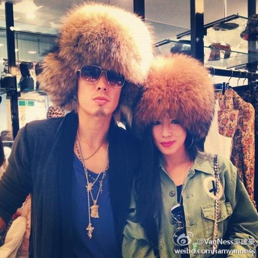 吳建豪與姚之寧同戴情侶帽(圖片來源:吳建豪微博)