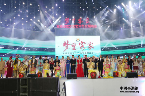 中國臺灣網11月23日廣東梅州消息 “夢里客家”——首屆客家文化藝術節主題晚會22日晚在梅縣體育場舉行。廣東省長朱小丹、中國國民黨榮譽主席吳伯雄、海協會會長陳云林等,與梅州市18000多名客家鄉親一起出席晚會。晚會中高潮迭起,洋溢著濃濃的客家味,鄉親情。