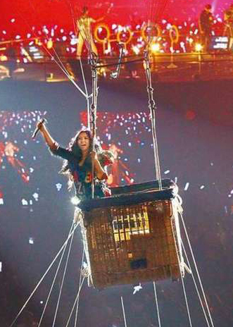 唱high的阿妹登上熱氣球繞場致意 噱頭十足(圖片來源:臺灣媒體)