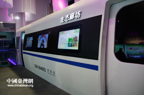 固安規(guī)劃館內(nèi)的“生態(tài)廊坊”列車。(中國臺灣網(wǎng) 焦源源 攝)