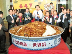 據報道,彰化號稱是臺灣的“美食中心”,今年舉辦的彰化美食節立下以肉圓及焢肉飯挑戰雙項世界紀錄的目標,昨天,挑戰圓滿落幕,最大碗焢肉飯記錄定格在647公斤。