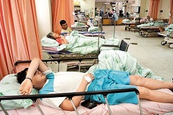 醫院急診室里躺滿了身體不適等待就醫的師生。(圖片來源:臺灣《中國時報》)