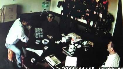 竹聯幫吳姓堂主恐嚇被害人場景被監視器拍下。(圖片來自臺媒)