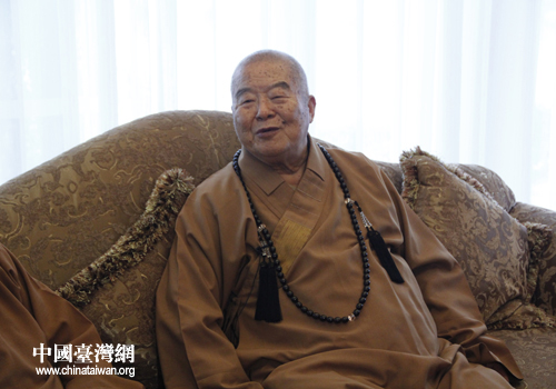 星云大師接受媒體采訪。(中國臺灣網 馬萌 攝)
