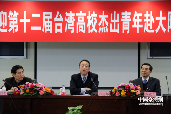 鄭建邦在會見中對參訪團的到來表示了歡迎,他說,剛剛過去的2012年,在兩岸關(guān)系發(fā)展進程上具有特殊重要的意義。年初臺灣地區(qū)兩項重要選舉結(jié)果表明,兩岸關(guān)系和平發(fā)展符合兩岸同胞的共同愿望,符合中華民族的整體利益,符合時代發(fā)展進步的潮流。只要兩岸雙方沿著和平發(fā)展的正確道路堅定走下去,就一定能進一步開創(chuàng)兩岸關(guān)系和平發(fā)展的新局面,也勢必給兩岸的青年才俊提供更為寬闊的展示才華的舞臺。