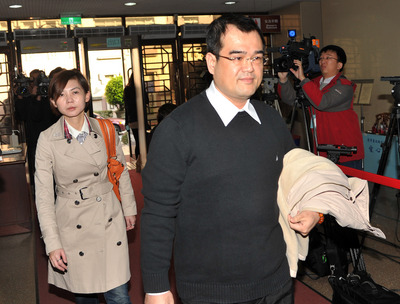 臺北地院21日再次開庭審理林益世被控貪污案,林益世(右)與妻子彭愛佳(左)一起出庭。(圖片來源:臺灣今日新聞網(wǎng))