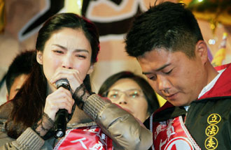 顏寬恒妻子陳麗凌(左)用淚水真情催票。(圖片來源:臺灣“聯合新聞網”)