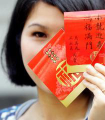 他說,打開內頁后如同往年設計,經反折后都可以站立。內頁其中一面有馬英九親書“小龍迎春,鴻福滿門”,并有馬英九與臺灣地區副領導人吳敦義的落款。內頁另一面寫著“如意”,如字書寫方式隱含小龍意象,意字中間放著1元硬幣,象征“一元復始,新春如意”。