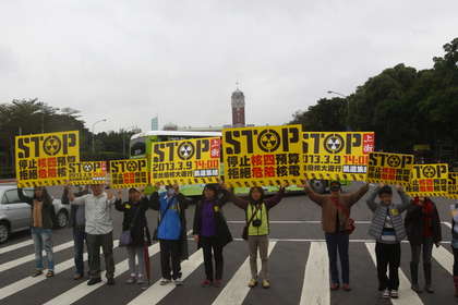 “2013全臺廢核大游行”人士在臺北誓師。(圖片來自臺媒)