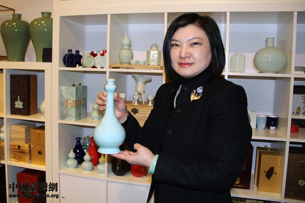 溫潤如玉的陶瓷酒瓶。(中國臺灣網 王偉 攝)