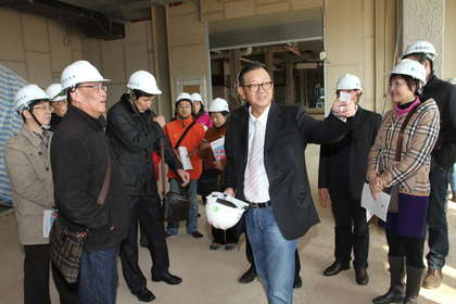 邱復生(著西裝外套者)向上海旅游業人士介紹商店街規劃。(圖片來自臺媒)
