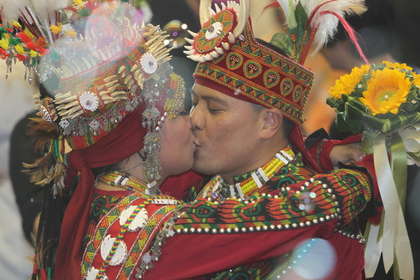 魯凱族新郎胡俊銓、新娘張慧君。(圖片來(lái)自臺(tái)媒)