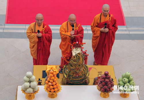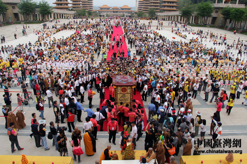 中國臺灣網(wǎng)3月31日高雄消息 30日下午,山西關(guān)公祖廟圣像停駕臺灣佛光山,一場別開生面的關(guān)圣帝君祈福法會(huì)在佛光山佛陀紀(jì)念館舉辦。