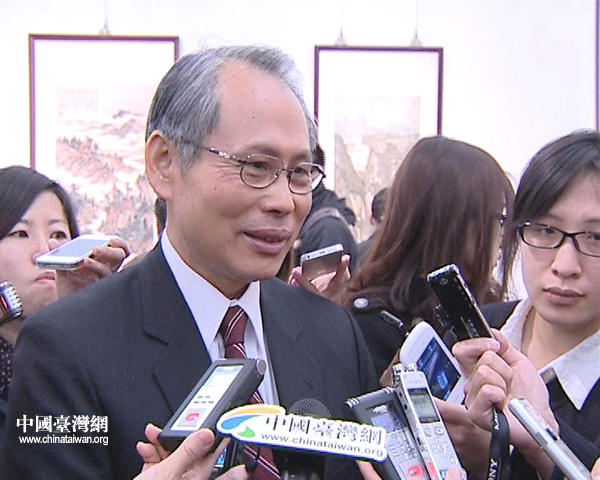 臺灣文化會館基金會執行長蘇進強在畫展開幕式上接受媒體采訪(中國臺灣網 董憲超 攝)