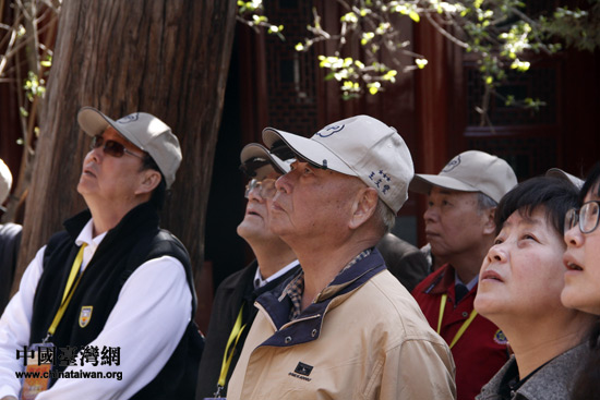 4月9日上午,由來自臺灣的統(tǒng)派人士和退役將領近70人組成的參訪團一行參觀洛陽白馬寺。(中國臺灣網(wǎng) 李丹 攝)
