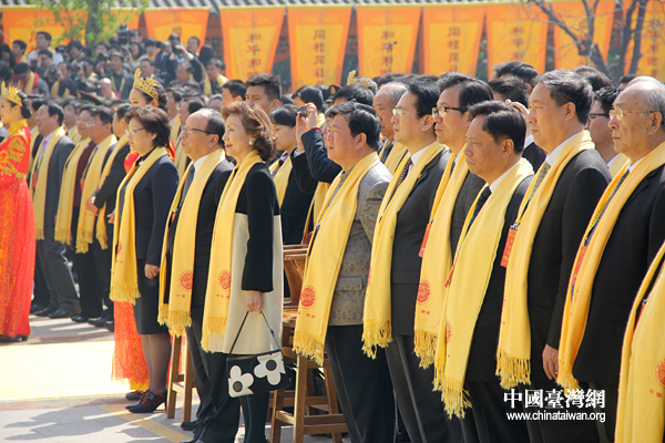 4月12日,癸巳年黃帝故里祭拜大典上午在河南新鄭隆重舉行。國臺辦副主任孫亞夫、中國國民黨副主席蔣孝嚴及其夫人參加了此次拜祖大典。(中國臺灣網 普燕 攝)