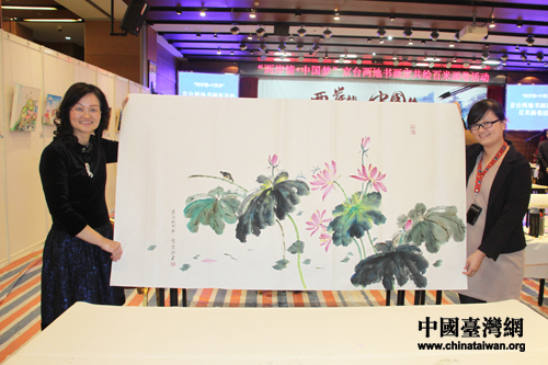 臺灣工筆彩墨畫家陸金招展示她的現(xiàn)場畫作。(中國臺灣網(wǎng) 郭慶娜 攝)
