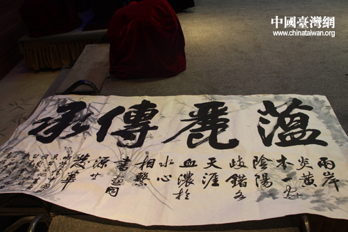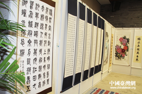 筆會同時(shí)進(jìn)行展出的南臺灣書畫家作品。(中國臺灣網(wǎng) 郭慶娜 攝)