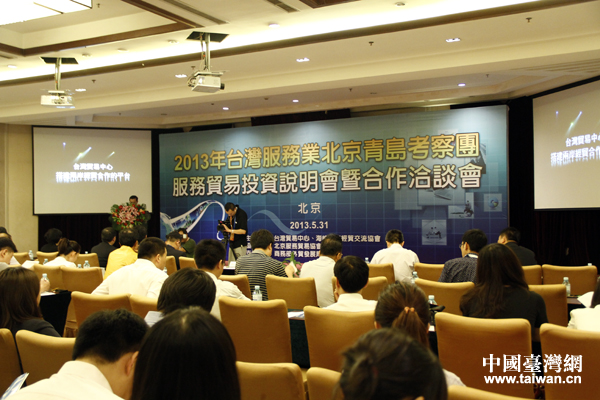 5月31日下午,由12家臺灣的服務業(yè)廠商組成的考察團來京考察,了解大陸的服務業(yè)投資環(huán)境、優(yōu)惠條件等情況,并進行洽談。(中國臺灣網 楊麗 攝)