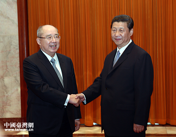 6月13日,中共中央總書(shū)記習(xí)近平在北京人民大會(huì)堂會(huì)見(jiàn)中國(guó)國(guó)民黨榮譽(yù)主席吳伯雄。(中國(guó)臺(tái)灣網(wǎng) 王偉 攝)