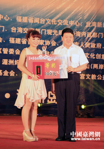 中國臺灣網6月15日莆田消息 6月14日晚,媽祖之歌·第四屆海峽兩岸媽祖歌曲青年歌手大獎賽成績在湄洲島天后廣場揭曉。經過13日晚的決賽,來自臺灣的青年歌手吳盈靜榮獲一等獎。