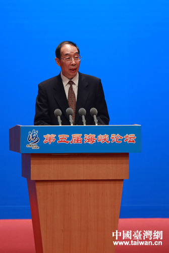 第五屆海峽論壇16日上午在廈門舉行論壇大會,中共福建省省委書記尤權在大會致辭中表示,為了進一步促進閩臺之間各領域的交流合作,今年福建將出臺一系列新的政策措施。(中國臺灣網 普燕 攝)