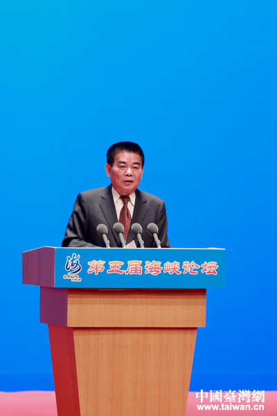 第五屆海峽論壇大會16日上午9時在廈門舉辦,出席大會的臺灣職工代表、臺灣中華兩岸勞動關系發展協會理事長姚江臨發言。(中國臺灣網 普燕 攝)
