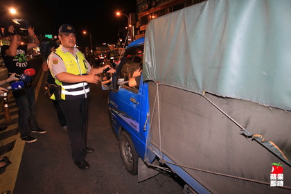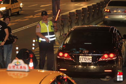臺(tái)北市警方在忠孝西路前執(zhí)行酒測(cè)勤務(wù),將車輛攔下一一查看。(圖片來自臺(tái)媒)