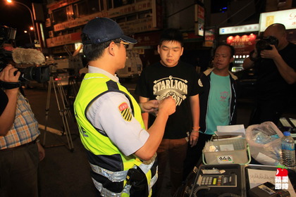被攔下民眾進(jìn)行酒測(cè)吹氣動(dòng)作。(圖片來自臺(tái)媒)