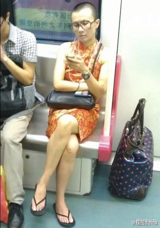 “女版文章”穿旗袍搭乘臺灣捷運。(圖片來自網(wǎng)絡)