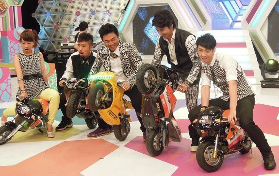 中國臺灣網(wǎng)6月21日消息 據(jù)臺灣媒體報道,臺灣三立電視臺新推出的《綜藝大熱門》21日首錄,主持人吳宗憲、歐漢聲、陳漢典、阿達、Lulu騎著迷你摩托出場,還自行在攝影棚玩起迷你“碰碰車”!吳宗憲和歐弟的“玩癮”似乎被勾起,更接著玩起摩托獨輪騎行的戲份,歐弟開玩笑說:“節(jié)目中這樣翹起來好像不好。”吳宗憲則附和:“很久沒這樣翹起來了!”言語中略帶色色的感覺。