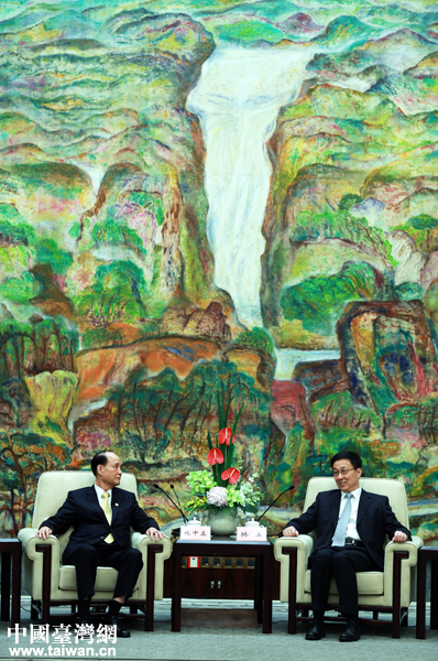 中共中央臺辦、國務院臺辦主任張志軍,海峽兩岸關系協會會長陳德銘,上海市領導沙海林、尹弘參加會見。(中國臺灣網記者 王偉)