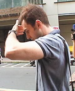 土耳其籍男子王凱杰遭裁定羈押;昨天他面對(duì)鏡頭不斷遮掩,十分狼狽,和先前的帥勁判若兩人。(圖片來(lái)源:臺(tái)灣《聯(lián)合報(bào)》)