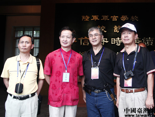 臺灣嘉賓與保定軍校紀念館館長合影留念。(中國臺灣網 高斯斯 攝)