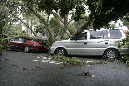 老樹壓毀車輛,車主直呼倒霉。(圖片取自臺媒)
