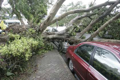 被老樹壓毀的車輛。(圖片取自臺媒)
