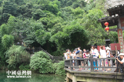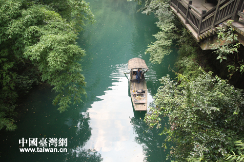 中國臺灣網7月13日宜昌消息 白墻青瓦石板路,小橋流水吊腳樓,13日,首屆全國旅游重點網絡媒體靈秀湖北行記者團走進最后一站——宜昌,當天中午,記者團一行乘船來到宜昌著名的5A級景點——三峽人家,感受了一場煙雨迷蒙的自然、文化夢幻洗禮。
