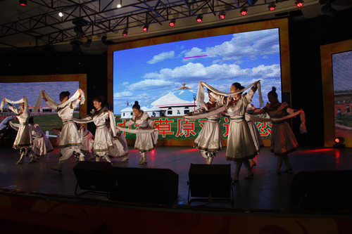 蒙古族姑娘在歡迎宴會上表演歌舞(中國臺灣網 蕪同 攝)