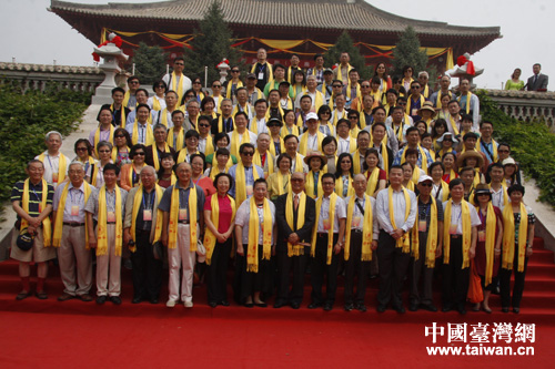全體人員在黃帝城祭拜中華三祖禮成后,合影留念(中國臺灣網 蕪同 攝)