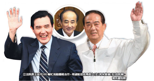 相關人士指出,國民黨秘書長曾永權穿梭其中,向“立委”探詢是否愿意成就國親合作,讓親民黨轉型成政團出現一線曙光。就連“立法院長”王金平也從旁協助,幫忙推動國親合作,希望能促成馬英九和宋楚瑜的和解。