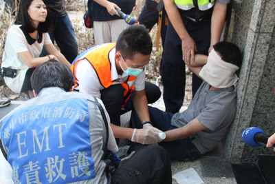 附近民眾表示,顏男并不是第一次出現(xiàn)在這里,當(dāng)?shù)乩镩L(zhǎng)趁顏男刀放在地上時(shí)趕緊踢掉,在救護(hù)人員趕到現(xiàn)場(chǎng)幫男子割腕的手進(jìn)行包扎后,顏男便自行開車離去。